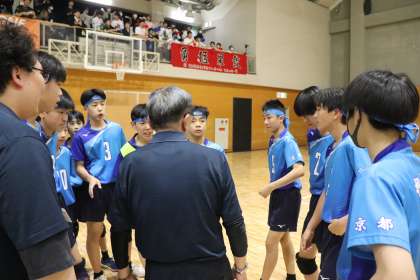 準決勝で八条中学に0−2で敗北した男子バレー部でしたが、夏のシード順を決めるための3位決定戦にのぞみました。夏の府大会や近畿大会出場に影響しますので重要な試合となります。この試合は、顧問の先生の取計らいで取材班もベンチに入らさせてもらうことができました。選手を近くで見ると、試合に向けた闘志がひしひしと伝わり臨場感がありました。