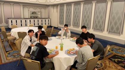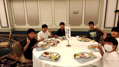 時間通りに集まり朝食が始まりました。眠そうな生徒もいれば、元気一杯な生徒もいるようです。
