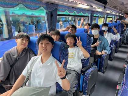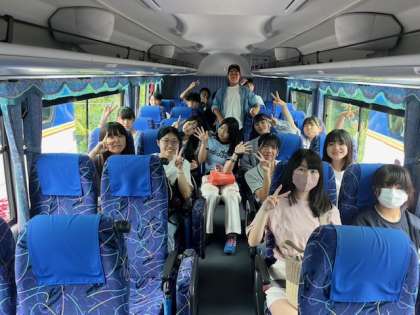 太刀洗平和記念館からグリーンランドへ向かっています。バス内の様子も、楽しそうな感じです。