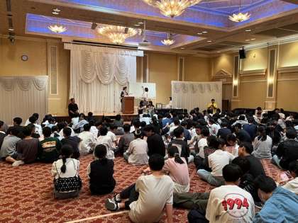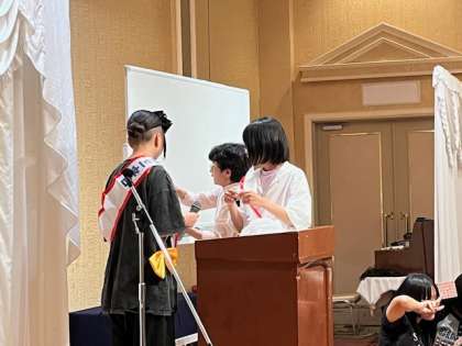 最後のゲームはビンゴゲームです。先生も参加します。司会者の番号発表のたびに一瞬の静寂があります。