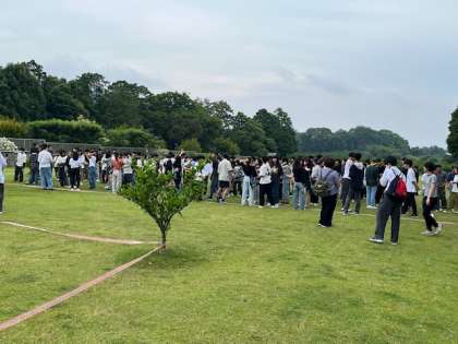 雨雲レーダーの予報通り、雨が止みました。ここから1時間ほど降らないようです。ホテル敷地内にある芝の公園で行われます。今日も学年レク係が大活躍です。