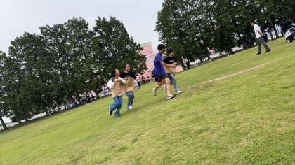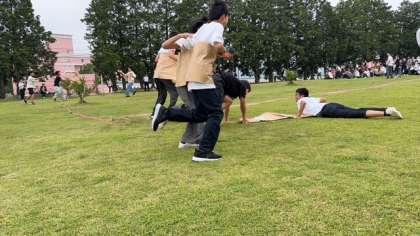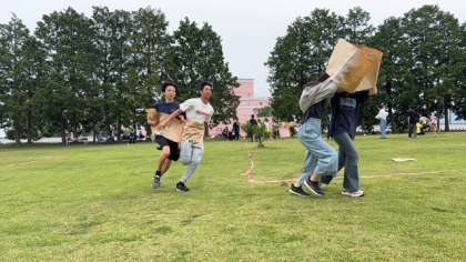 レースが始まりました。デカパンが途中で破れるトラブル発生です。レク係が破けたら新しいデカパンと交換しています。