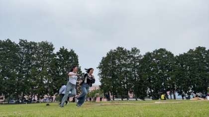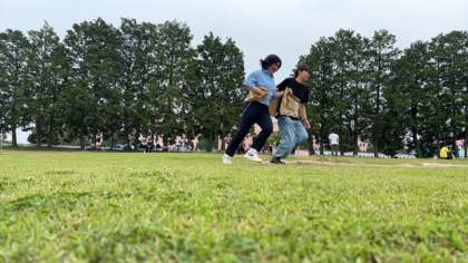 予備のデカパンがなくなり、後半からは手を繋いでのレースに変わりました。