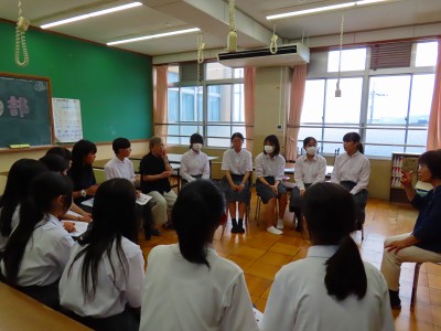 UD部は講師の方に来校していただき、昨日手話を学びました。自己紹介を手話で行い、その後はいろいろな話題(好きな学校行事、授業科目、誕生日)などを手話に直して会話をしました。また、手話クイズ(国名、都道府県名)や講師の先生に質問して答えてもらうなど、とても充実した時間を過ごしました。