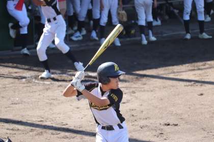 3回表の樫原の攻撃。先頭バッターが四球で出塁し盗塁でノーアウト2塁。この場面で相手ピッチャーの牽制球がセンターに抜けてしまいセカンドランナーは一気にホームイン。この回もノーヒットで得点を重ねます。その後、Nさん(3−5)のチーム初ヒットが飛び出し、その後満塁と一気に大量得点を期待しましたが後続が続くかずに1点とまり。しかし、序盤で3−0で有利に試合を進めます。