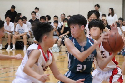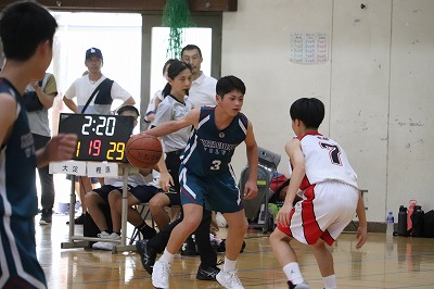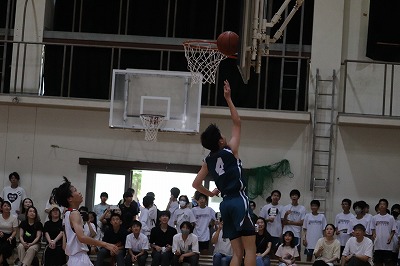第2ピリオドは、Sさん(3−7)がオフェンスリバウンドからのシュートで先制します。1年生の応援も熱を帯びてきます。しかし、4分すぎから大淀中のペースとなり29−21と追い上げられます。残り2分10秒で樫原中がタイムアウト。直後のプレーでOさん(3−4)が冷静にファウルスローを決めます。お互いに点を取り合った形になりましたが、このピリオドで樫原中がリードをわずかに広げます。