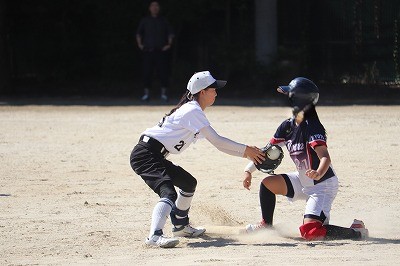 準決勝が20日(日)に勧修中学校で行われました。準決勝の相手は音羽中学です。1回表、2アウトからNさん(3−3)が出塁しすかさず盗塁。相手の送球ミスで3塁まで進みますが後続が倒れて無得点に終わります。