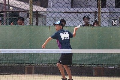 ていねいにコースを狙うのが持ち味のペアです。ゲームカウント2−3のところで顧問の先生からの作戦の指示が入り見事な逆転勝利です。