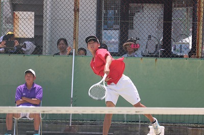 Hさん(3−6)・Mさん(3−3)の相手は附属桃山中学校。相手が執拗にサイドを中心に攻撃。一撃必殺の作戦。樫原も相手の作戦に気付いて対応するものの3ゲーム連続で落としてしまう展開。4ゲーム目にはなんとか取り戻すものの流れは相手ペア。猛暑の疲れもあったのか1せンチでアウトというボールが2度、3度。実力は拮抗しているものの5ゲーム目もロストし、ゲームセット。個人戦の2連覇には至らず。しかし、夏季大会の3位は見事です。府大会では目標であるOさん(3−3)・Fさん(3−3)に勝利しての優勝を目指して頑張って下さい。2ペア共にの活躍を願っています。疲れた身体をゆっくり回復させて下さい。