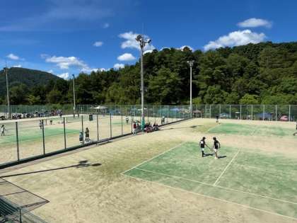 28日(土)にソフトテニス団体戦が行われました。各予選を勝ち上がった11チームが参加し上位2校が近畿大会に出場できます。会場は丹波自然運動公園でした。大自然に囲まれたコートで横にはプールがありました。気温も高かったのですが、試合はそれ以上に熱いものになりました。樫原中は、京都市内大会では、新人大会、春季大会、夏季大会と3連覇を果たしました。目標は決勝まで進出して近畿大会の出場権を得ることです。
