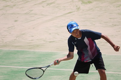 準決勝の相手は城陽中学。戦前から樫原中・綾部中・城陽中の3校の対決と言われていました。第1試合にはFさん(3−7)・Kさん(3−3)ペアが出場しました。応援も1回戦とは比べものにならないくらい両チームともに激しく、この試合にかける気持ちが伝わりました。第1ゲームを4−2でとった樫原中でしたが、第2ゲーム以降ショットが単調になってしまいます。第3ゲームと第4ゲームの間には2人で作戦を練り直しますが暑さのせいかミスも出るようになってしまいゲームカウント1−4で城陽中がとりました。