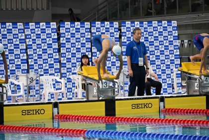 100m平泳ぎは出場ランキング23位だったYさん。1組での出場です。最初の50mを38秒06の4位で入り、後半追い上げて1分21秒08の2位でフィニッシュしました。ベストタイムには1秒ほど足りませんでした。