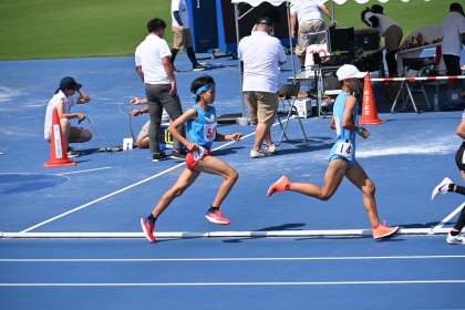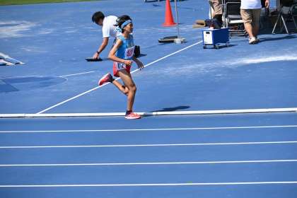 最初の300mは、トップの通過タイムが53秒。Tさんは、先頭集団についていき5〜6番目の位置取りでした。700mも先頭集団についてきましたが、1100mくらいから徐々に離されていきました。ブルータータンの影響で足の筋肉に疲労がたまってきて思うようで地面を蹴ることが難しかったようです。ゴールは全体の9番目で4分44秒のタイムでした。この種目は上位を2年生が独占していて、2年生のレベルが高いそうです。トップは4分33秒あたりのタイムでしたので、来年度に向けていい目標設定ができたと思います。来年こそは全国標準を突破できるように頑張って欲しいと思います。駅伝での活躍を楽しみにしています。