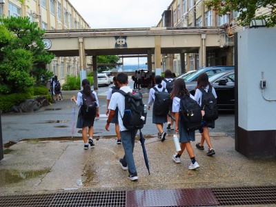 台風の接近に伴い雨風も心配していましたが、今のところは小雨で風もなく、生徒の皆さんは元気に登校しています。学校では台風の情報をしっかりキャッチしながら教育活動を安全に進めていきます。どうぞ皆様も安全に気をつけながらお過ごしください。