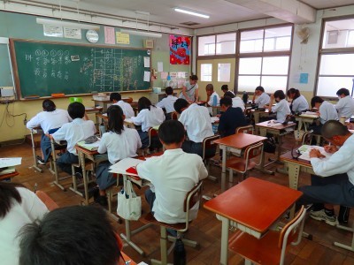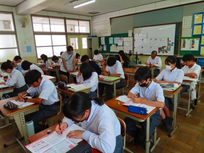 動詞の活用について学習していました。その後、自分たちで活用方法の見分け方についてプリントを使用して学んでいました。