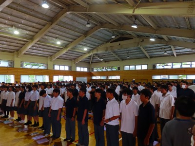 いよいよ合唱コンクールの練習の季節となりました。本日の6限目に1年生は前半は各クラスでパートごとに分かれて練習し、後半は格技室で学年合唱の練習を行いました。各クラス合唱コンクールに向けていいスタートが切れているみたいです。今後の練習も頑張ってください。
