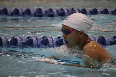 女子50m自由形に出場したIさん(2−4)はランキング2位での出場で、後半思ったよりもタイムが上がりませんでしたが、粘りを見せて8位に入賞しました。