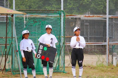 5回樫原の攻撃、1アウトEさん(1−4)がデッドボールで出塁し、続く打者Iさん(2−4)がセンターへの大きなあたりを放ち、ランニングホームランでベースを踏み2点を追加しました。その後、2アウトになりランナーは1・3塁の場面でEさん(1−4)がショートへを抜ける打球を放ち、一人かえってさらに1点を追加しました。Iさん(1−6)がデッドボールで出塁し、樫原はここで満塁となるがピッチャーフライに倒れます。しかし、この回3点を追加しました。洛南の攻撃へ移ります。