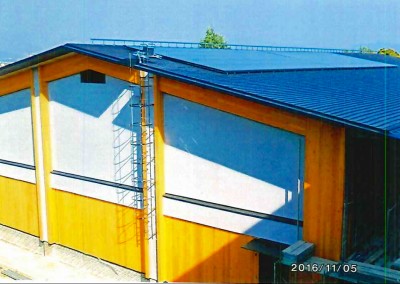 体育館工事は基礎工事が2016年の6月3日より7月7日まで行われ、8月6日からは、棟上げ工事が開始されました。9月14日の工事の進み具合を写真でみると、体育館の屋根の部分まで、できているのが確認できます。さらに10月7日の写真では屋根が完成し、外壁の工事に取り掛かっていましたが、11月5日にはほぼ完成した状態になりました。