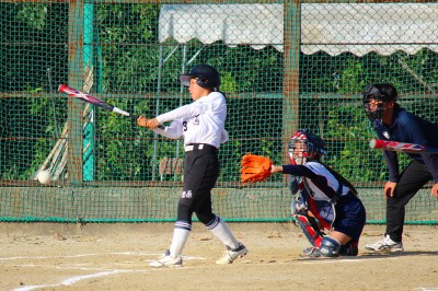 市内大会の2回戦これに負ければ決勝リーグへの道が立たれる試合です。樫原は守備からのスタートです。対戦相手は同志社女子で迎えた1回表、いきなり先頭打者にランニングホームランを許し、1点を奪われます。しかし、そのあと出塁を許しますが、何とか1点に抑えました。続く1回裏、樫原の攻撃は2アウトからIさん(2−4)がお返しのランニングホームランを放ち同点とします。Sさん(1−2)のセンターへの良い当たりは惜しくも相手守備に取られてチェンジ。