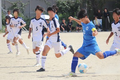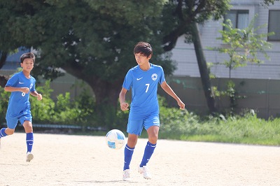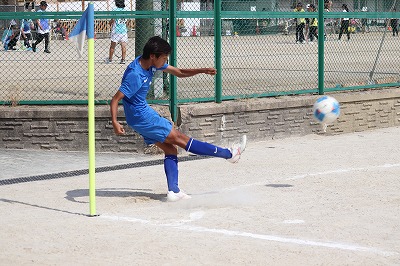 試合開始から樫原中が攻め込みます。5分、Mさん(2−6)の中央突破からのシュート、Iさん(2−2)の左サイドからのシュートと2本連続で相手キーパーの正面で惜しくも得点にならず。押し気味の樫原中でしたが、相手チームのカウンターから右サイドを崩されゴールを許します。しかし、その後も樫原中が攻め込む時間が続きます。そして、前半19分、Mさん(2−6)がドリブルで抜け出しキーパーと1対1に。シュートはゴールポストに当たりますがはね返ってきたところをもう一度シュート。ゴール右隅に決まり1−1のタイスコアに。前半終了間際にも、ヘディングシュートがゴールネットを揺らしますが惜しくもオフサイドの旗。