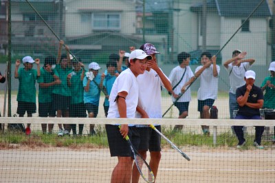 Iさん(2−4)、Iさん(2−3)の決勝戦。いよいよ決勝戦です。決勝戦の相手は洛西中学校でした。1セット目から白熱した展開となりました。得点を重ねていきますが大事な場面で相手に決められデュースになり、取っては取られて最後は連続で決めて1セットを奪いました。しかし、2セット目をストレートで取られたあとに3セット目も後半に連続ポイントをきめられて2・3セット目を落とします。このままでは終われない2人は、自分たちのリズムに持込み、相手から4セット目を取りました。これで2−2となり、迎えた5セット目は粘りのある試合を見せますが、接戦をものにすることができませんでした。しかし、見事な準優勝での市内大会通過です。市内大会でのさらなる飛躍と活躍を期待しています。