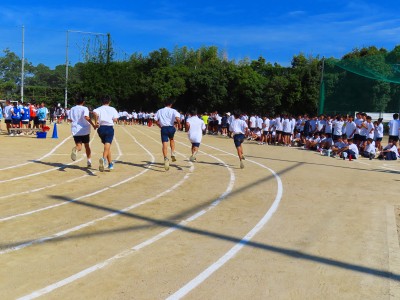 全学年、100mを軽めに走り、各自の順番や距離感覚を確認していました。その後に行われた学級対抗リレーでは軽めで行うのかと思いきや本番さながら真剣勝負を行っていました。学級対抗リレーは毎年、様々なドラマが待ち受けています。まだまだ練習段階です最後まで勝負はわかりません。みんなで応援して盛り上げていきましょう。リレーに出場する選手の皆さんくれぐれも怪我にはご注意ください。勿論、全校生徒の皆さんも体調を整えて当日はベストを尽くせるように自己管理をお願いします。
