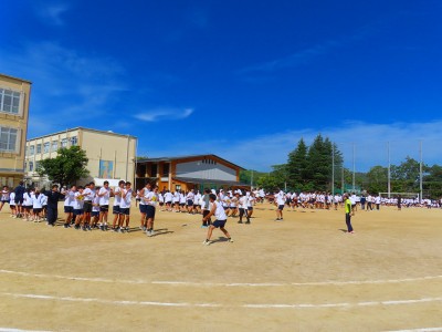 体育大会の練習は終盤になるにつれて盛り上がっていました。最後は大縄跳びの練習ですが、こちらは学年でのNO.1と学校のNO.1の称号をかけて生徒たちは全力で頑張っていました。ちなみに本日、全体練習での学校NO.1は2−6で合計数が74回でした。こちらもまだまだ練習段階ですので、真の王者はいったい何年何組になるのかはわかりません。当日の熱い戦いに目が離せませんね。どのクラスもベストを尽くしてください。体育大会当日を楽しみにしています。生徒と教職員で一丸となって体育大会を盛り上げましょう。やりまっせ樫原!!