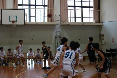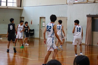昨日、衣笠中学校で男子バスケットボール部の秋季大会1回戦が行われました。対戦相手は洛北附属中学校でした。樫原中学校は、第1クォーター前半から積極的に攻める展開で、Wさん(2−3)を中心に得点を重ね、Hさん(2−3)、Uさん(1−2)も守備と攻撃で活躍していました。