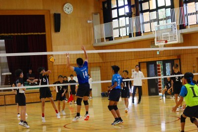男子バレーボール部の秋季大会の予選リーグが樫原中学校で行われました。初戦の相手は同志社中学校でした。樫原は試合開始からミスが重なり得点をリードされます。Kさん(1−3)、Nさん(2−3)、Hさん(1−7)が積極的に攻撃をしますが相手に拾われ苦戦を強いられます。樫原はリズムを作ることができずに点差をつけられ10−16とリードを許します。懸命にHさん(1−7)、Nさん(2−3)、Iさん(2−5)の連携で攻撃するも相手に返されます。1セット目は14−25で同志社が勝利しました。
