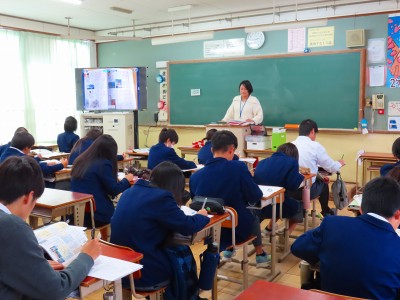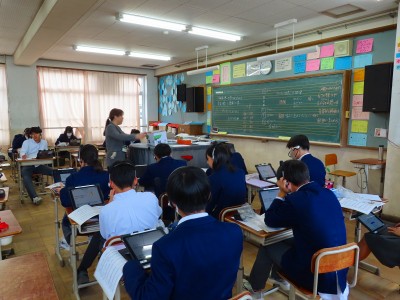 2年生は国語の授業で漢文について学んでいました。課題はプリントで配布されており、テキストを開いて個人での学びを深めていました。