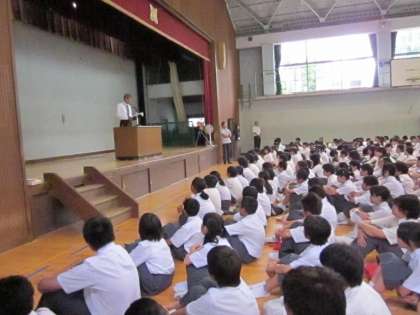 7月19日(金),1期のしめくくりとして,全校集会を行いました。校長先生のお話に続き,夏休みの生活についてのお話も聞きました。その後大掃除をして,学活では通知票をうけとりました。勉強,学校行事,部活動と,精一杯力を出し切った1期。夏休みも充実した毎日を過ごしてください。
