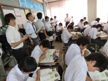 7月8日(火)6限 2年5組において社会科の授業研修が行われました。京都市採用1年目の先生方を前に尾上先生が授業を行いその後研究協議を行いました。京都市の先生方とともに授業力を高め,さらなる学校改善を図ります。