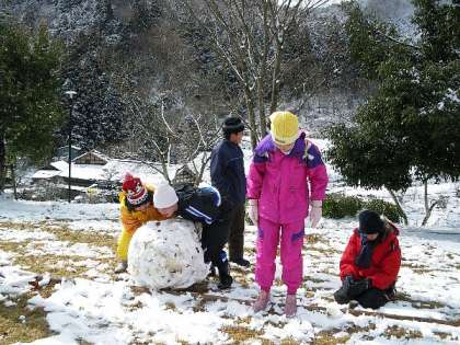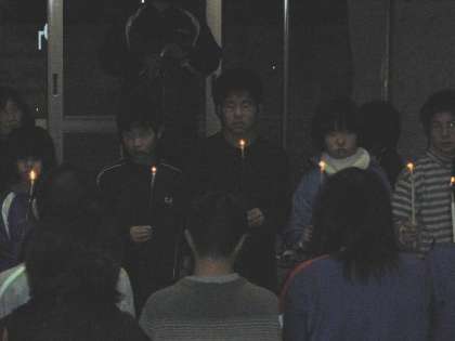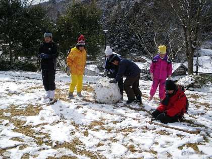1泊2日の花脊山の家の宿泊は、雪が残りる屋外で、自然観察「雪だるま作り」やキャンドルを灯して「夜の交流会」などを楽しみました。他の学校の人たちとも交流できて、有意義な体験学習でした。