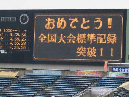 7月4日(土)5日(日)西京極総合運動公園陸上競技場において全日本中学生通信陸上競技大会京都大会が開催されています。樫原中学校陸上競技部の選手たちの全国大会出場を目指したひたむきなレースが展開されています。その頑張りに大きな声援が送られています。初日の4日には男子3000mで1名,女子1500mで2名の選手が全国大会標準記録を突破しました。素晴らしいレースでした。おめでとうございます。これからも挑戦が続きます。たくさんの皆さんの応援有難うございました。