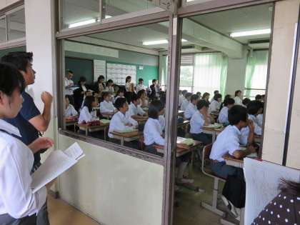 今日は午後から西京支部の中学校全校で授業研修が行われています。本校では国語科の山本先生が1年2組で授業をされています。たくさんの国語科の先生方が集まり、今後のご自分の授業の参考にするために熱心に見入っておられました。山本先生お疲れ様でした。そして、1年2組の生徒諸君も授業研修へのご協力、ありがとうございました。