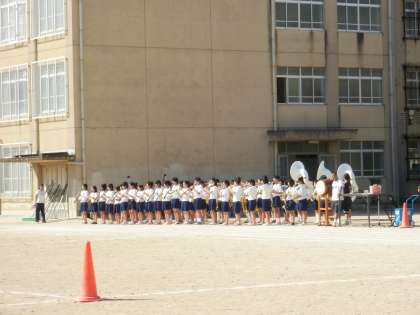 暑い中,28日の体育大会にむけて,入退場の練習や学年競技,色別対抗競技の練習に汗を流しました。当日が楽しみです。