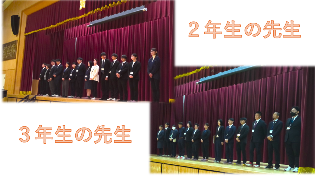 着任式・始業式では、新着任の先生方や新担任・部活動顧問の発表で歓声が上がっていました。
