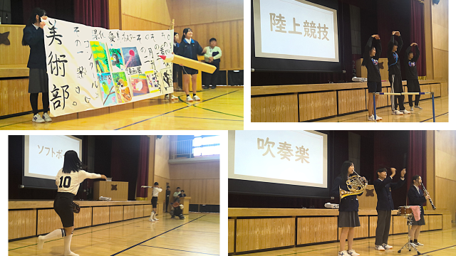本日は、新1年生を歓迎し、委員会や部活動の紹介を行いました。