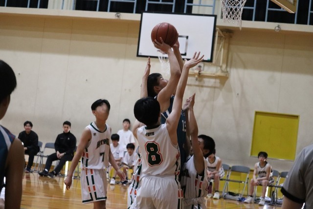 第4ピリオドも樫原中のペース。このピリオドもインターセプトが有効で相手の攻撃の芽をつみとります。残り2分には、Wさん(3-8)からのパスを受けたKさん(3-4)がシュートを決めるなど連携もよくなりました。終わってみれば、43-25の快勝でした。しかし、この試合ディフェンスリバウンドがなかなか取れずに苦戦しました。まら、外からのシュート確率が低かったので次の試合への課題が残りました。この試合は、オール3年生でのぞんだ試合でしたが、ベンチの応援もピリオドごとに高まった試合でした。2回戦も全員が一丸となってゲームにのぞんで欲しいと思います。