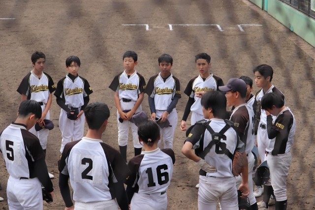 26日(日)、伏見区にあるアイアイ伏見桃山スタジアムで野球部の春季大会が行われました。秋の大会で上位だった野球部はシードでの出場で2回戦からの出場です。この大会で49チームの頂点を決める大会です。樫原中学からは、3年生7名、2年生5名、1年生7名の計19名が選手登録されました。Hさん(1-5)は1年生ながらレギュラーでの出場です。