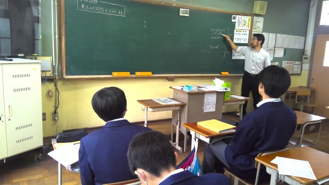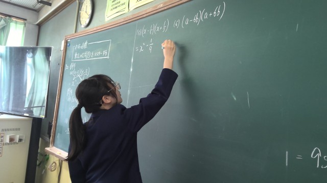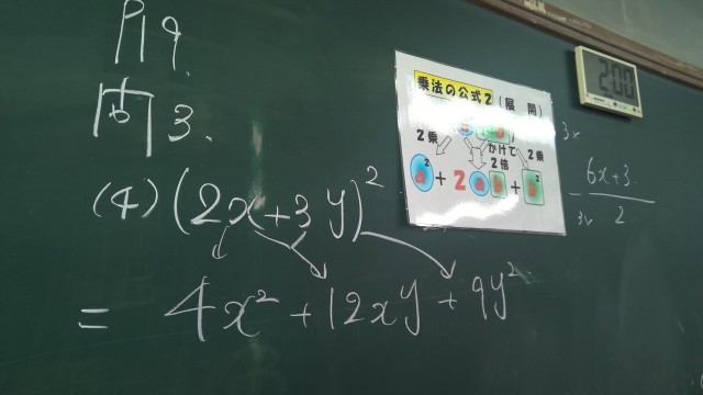 3年3組数学では、公式を活用しながら式を展開しています。
