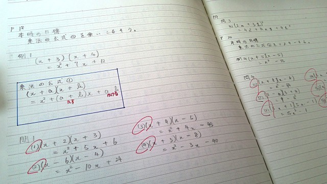 2乗と2倍の勘違いでうっかり計算ミスをしてしまったり、公式は覚えたのに最後に2乗を書き忘れたり、戸惑っている人もいましたが、1つ正解すると自信が出てきてスラスラ解けるようになっていました。数学は「ミス」をポジティブにとらえていくメンタルが必要になります。粘り強くいきましょう!!