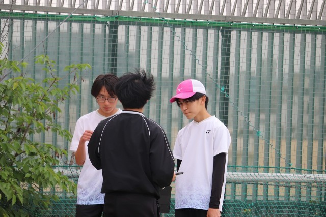 29日(祝)下京中学校で男子ソフトテニスの1回戦が行われました。下京中学校のテニスコートは屋上に作られていました。今日は肌寒い一日で、風が強いのでボールのコントロールが難しいなと思いながら試合を取材しました。団体戦は、3ペアが出場し2ペア勝った方が勝利となります。
