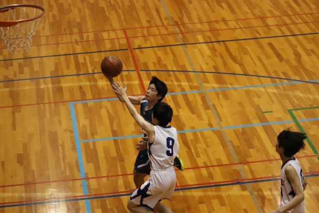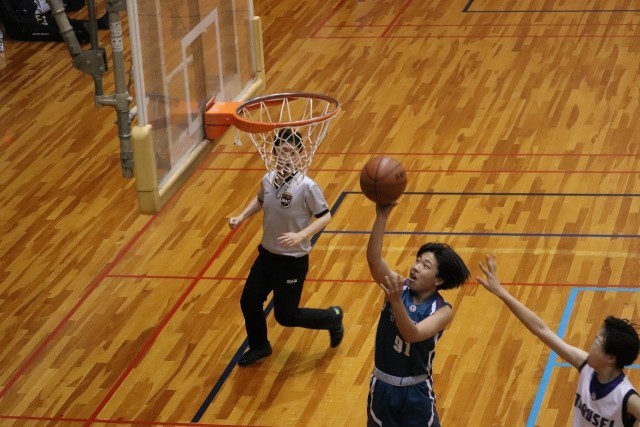 勝敗を決める第4ピリオド。開始1分、Sさん(3-7)の2本目の3Pシュート、Kさん(3-5)のミドルシュートが決まり50-44と一歩前に出る樫原中。ベンチ・応援席も一体となって必死に応援します。洛星中に追い上げられるも、Sさん(3-7)からのパスを受けたKさん(3-4)が確実にシュートを決めるなど6点差あたりで試合が進みます。しかし、試合が動いたのは残り3分でした。相手チームは、5人1チームを2パターン作っていて、試合中は5人全員が交代していました。したがって、樫原中とは疲労度が明らかに異なり、この時間あたりから相手の走力が上回ってきた感じがしました。残り1分23秒で55-56と再逆転されます。その後、タイムアウトなどで流れを引き寄せようとしますが、終盤にもシュートを気められ万事休す。最後の1分で引き離された感じでした。涙を流す選手もいましたが、本番は夏の大会です。控えメンバーも一体となって上達して総合力で勝てるようになって欲しいと思いました。