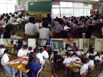アドバイザーの方にも各クラス1名ずつ参加していただき一緒に学習をしました。また、視聴覚教材を作られたNPO法人企画教育研究所の方も様子を見に来られました。なんと千葉県から来られたのですが、1年生の真剣に学習する様子を見られて大変喜んでおられました。