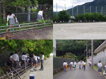 クリーン・ディは主に校舎まわりやグランドの清掃活動に励みます。