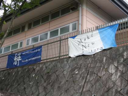 本校東門の上に、昨年度と今年度の生徒会本部が作成した横断幕を掲げています。こうして脈々と引き継がれていく「大枝生」としての有り様が、新たな「伝統」を築いていくのではないかと思います。