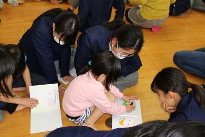 地域のひなたぼっこさん指導のおもちゃのチャチャチャを一緒に歌い,以前に習った手遊びを披露し,その後,各自が作った素敵な絵本の読み聞かせをしました。
