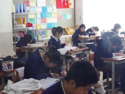 そうした中、3年生の教室では17名が「土曜学習」に参加し、一言の声も出すことなく黙々と学習に取り組んでいました。